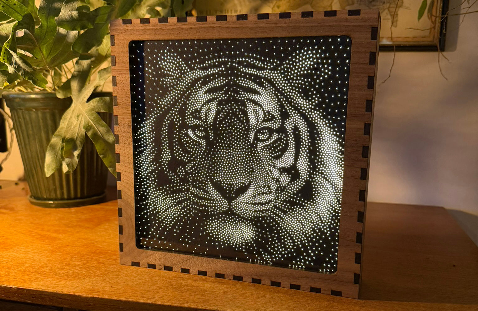 Tiger Stipple Light Box | Walnut Veneer Dimmable Mood Light | Table or Wall Light | Handmade in Somerset UK