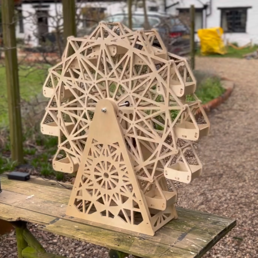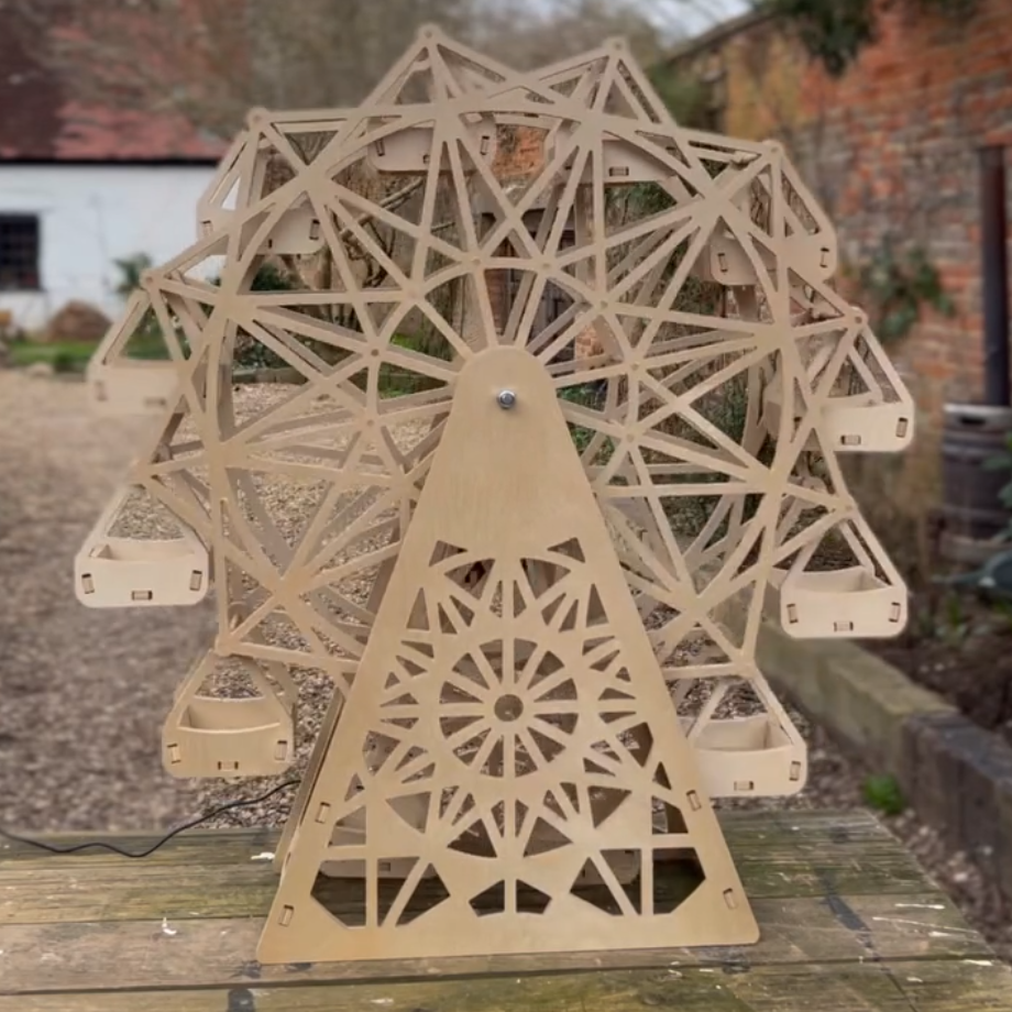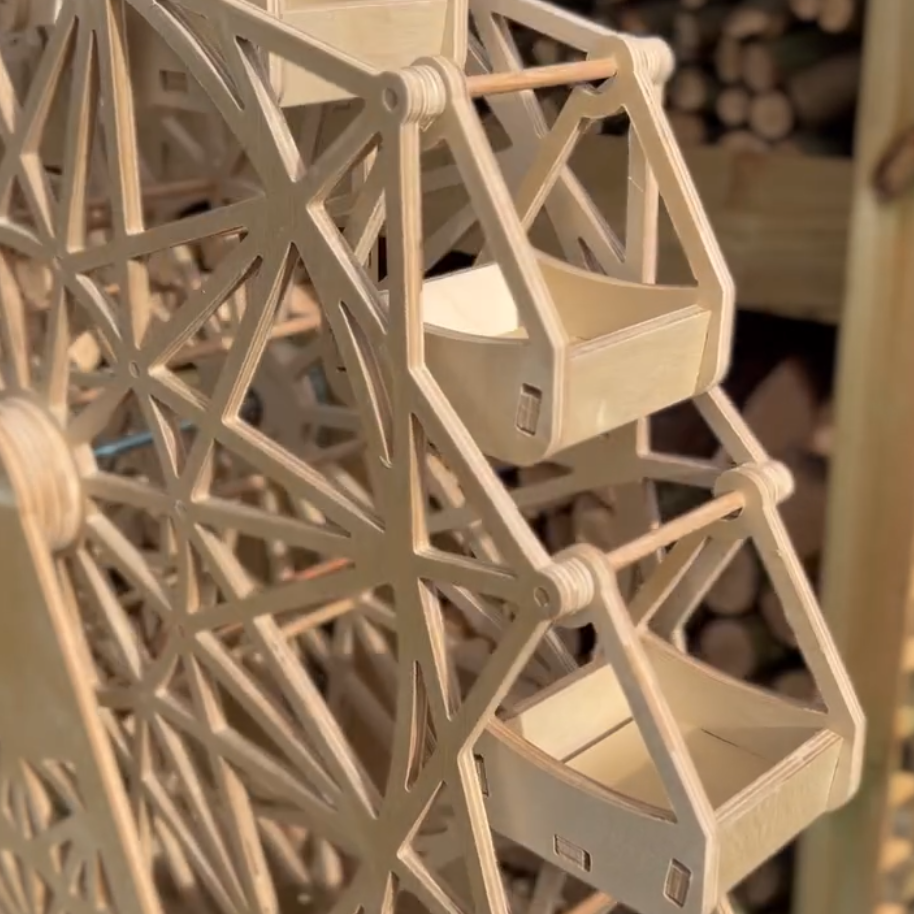 One of the first real CNC projects I took on in 2023. Birch plywood ferris wheel. I made 3.